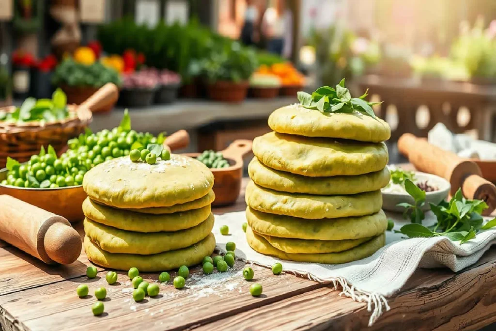 Piadine verdi primaverili: ricetta con farina di piselli, rucola, squacquerone e rosole